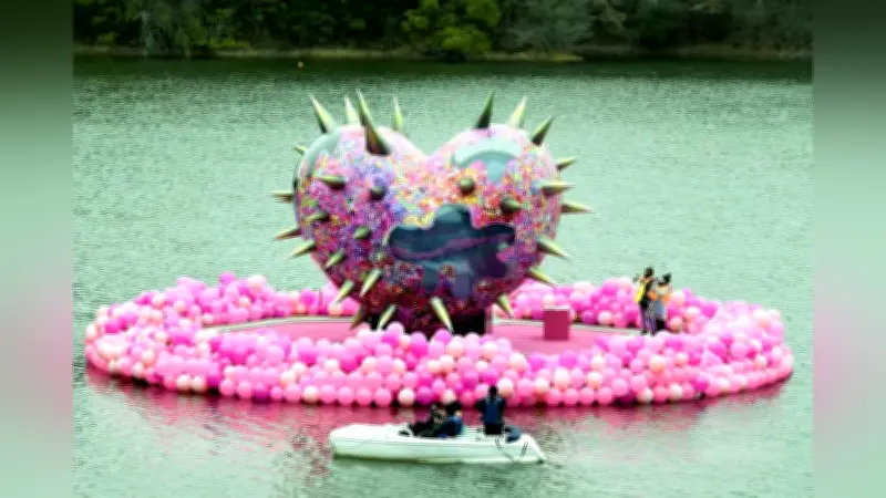 ミュージアムの展示以外にも、同施設に面した宮沢湖に、棘で守られた高さ6メートル、幅7.5メートルの巨大なハートが載った人工島が浮かべられました。この人工島にはボートで上陸できるようになっており、来館者にユニークな体験を提供しています。