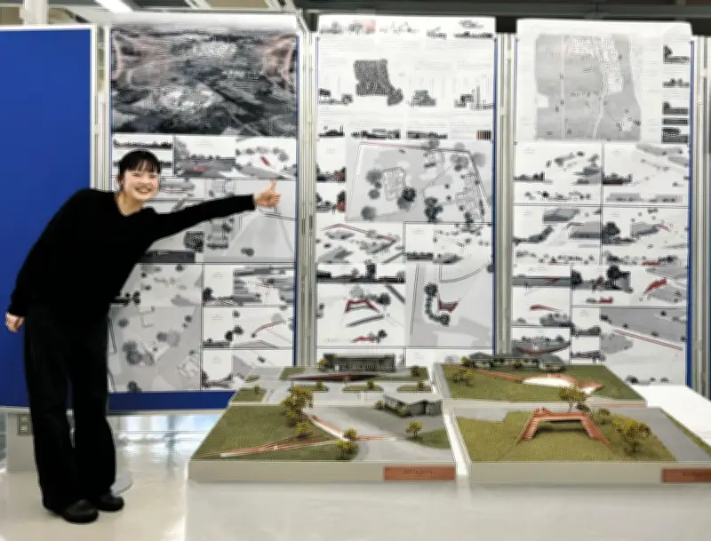 作品は学内で高く評価され、デザイン制作の中で1位を獲得。田代さんは「私たちの生活に近いようなまちがあったのでは。見てみたかったな」と語り、歴史的記憶を現代に伝える意義を強調した。この春からは地元に戻り、東京都内の企業で新社会人として働き始めている。