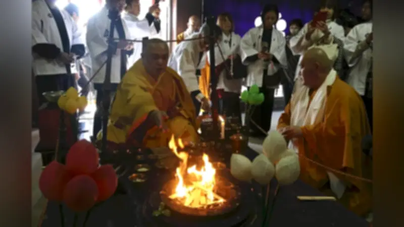 真言宗や黄檗宗といった各宗派の読経が響く中、住職が約30人の参拝者から受け取った護摩木を火にくべ、願いの成就を祈る厳かな儀式が展開されました。午後には、石を浄心寺(湯前町)に移し、各宗派合同の読経会が行われ、地域全体で伝承への祈りを共有する機会となりました。