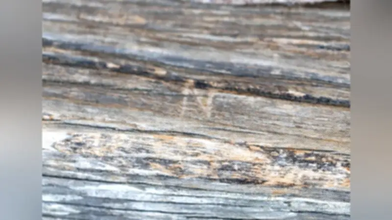 落書きは、天守の1階入り口付近にある「上がりかまち」の木材に刻まれていました。文字は「N」のような形状で、縦約1.8センチ、横約1センチの大きさです。表面がコインなどで削られたとみられ、正確な時期は不明とされています。