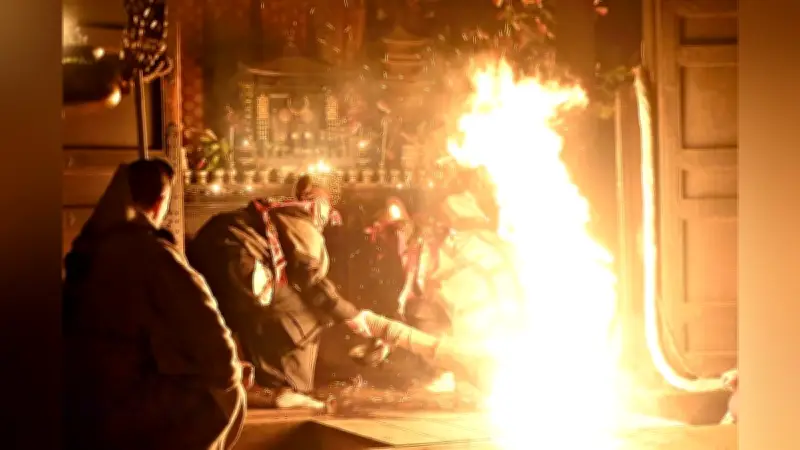 燃えさかる松明で災いをはらう達陀の儀式