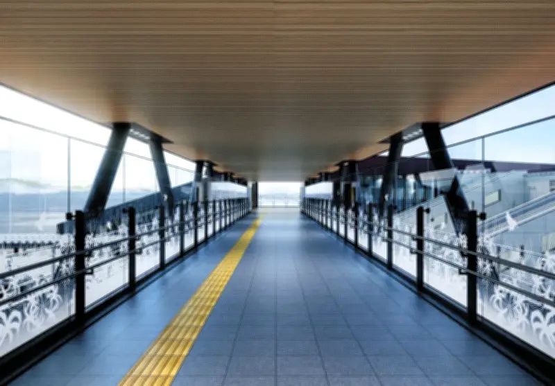 特に注目されるのは、ガラス壁面に描かれたマンジュシャゲのデザインである。日高市には日本最大のマンジュシャゲ群生地があり、この地域の自然環境を象徴する植物として、通路の景観に溶け込んでいる。