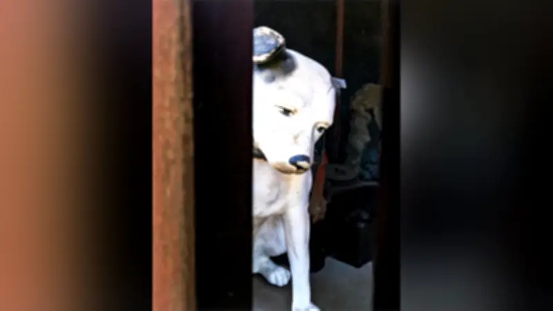 通りに面した家の格子の奥に置かれた犬の置物が、まるで飼い主に叱られてオリに閉じ込められたかのような表情を浮かべています。加川さんは、「格子をオリに見立てて撮影し、余計な要素をトリミングで除くことで、情景をイメージしやすく工夫しました」と語りました。