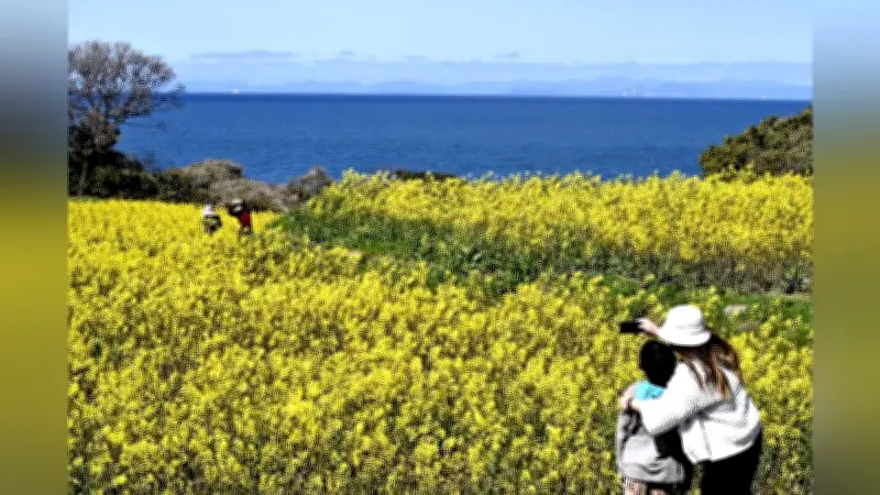 大分県豊後高田市見目の長崎鼻リゾートキャンプ場で、「菜の花フェスタ2026」が3月14日に開幕しました。このイベントでは、海岸沿いの広大な畑に約2700万本の黄色い菜の花が咲き乱れ、青い海との鮮やかなコントラストが訪れる人々の目を楽しませています。開催期間は4月12日までとなっており、春の訪れを感じさせる風景が広がっています。