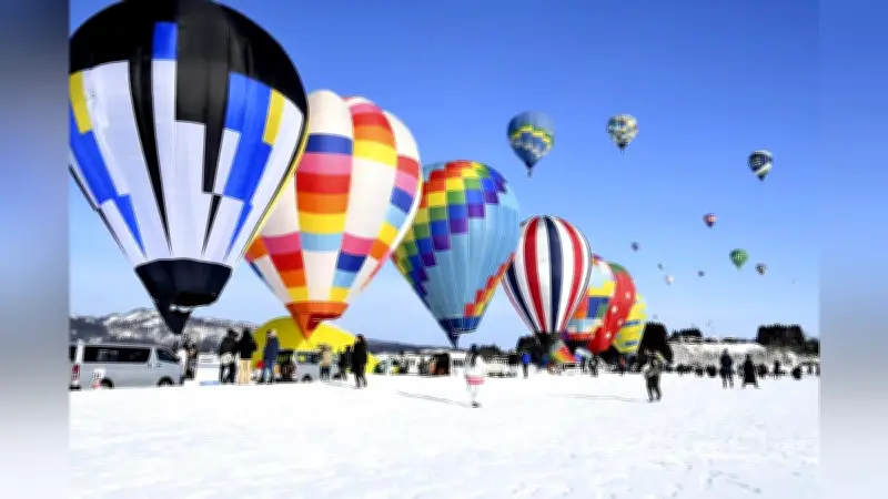 新潟県小千谷市で、全国から集まった熱気球が空を彩る「おぢや風船一揆」が2月21日に始まりました。多くのカラフルな気球がふわりと雪原から飛び立ち、多くの人々が見守る中、次々と空へ浮かび上がる光景が広がりました。このイベントは22日も行われ、地域の冬の風物詩として親しまれています。