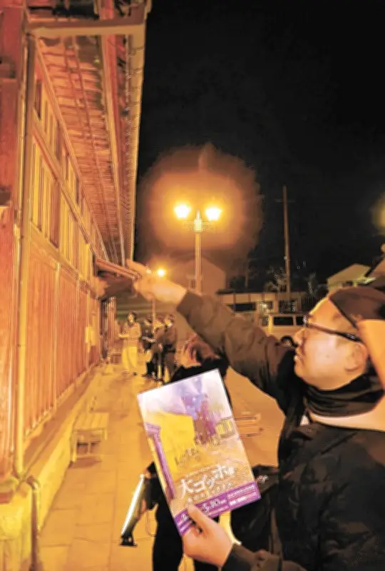 鯖湖湯前では、青年部員たちが準備を急いでいます。黄色の明かりが石畳を優しく照らし、頭上には星空が広がることで、まるで絵画の中に迷い込んだような雰囲気を醸し出しています。この光景は、訪れる人々に非日常的な体験を提供することを目的としています。