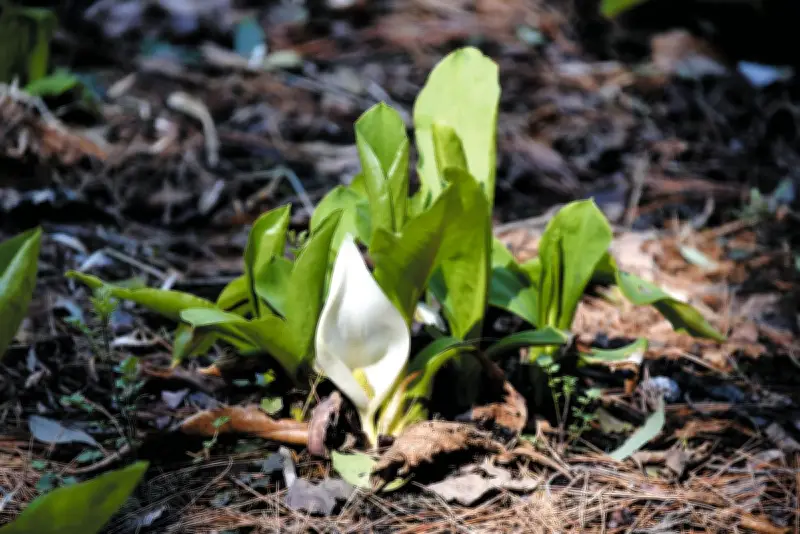 ミズバショウは湿地に生育するサトイモ科の多年草で、白い仏炎苞(ぶつえんほう)が特徴的。その清楚な姿から「春の使者」とも呼ばれ、多くの植物愛好家から親しまれています。太田市ではこの時期、金山の麓に広がる白い花の絨毯が、冬の終わりと春の始まりを鮮やかに告げています。