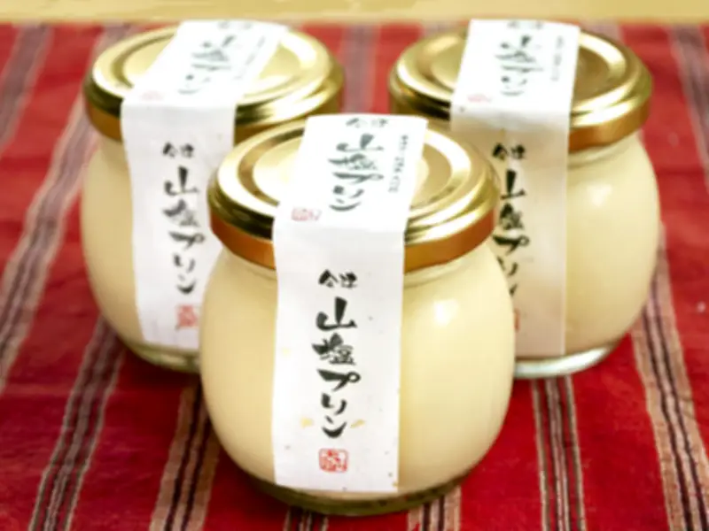 濃厚な味わいを楽しめる「会津山塩プリン」は、会津若松市の芦ノ牧温泉にある旅館・大川荘が製造と販売を手がけるオリジナルスイーツです。宿泊者の要望から誕生したこの一品は、会津中央乳業(会津坂下町)の特濃牛乳と厳選された卵の風味を、会津山塩が引き立てることで、塩味の利いた濃厚な味わいを実現しています。湯上がりにぴったりのこのプリンは、プレーン味とショコラ味の2種類があり、それぞれ1個420円で提供されています。