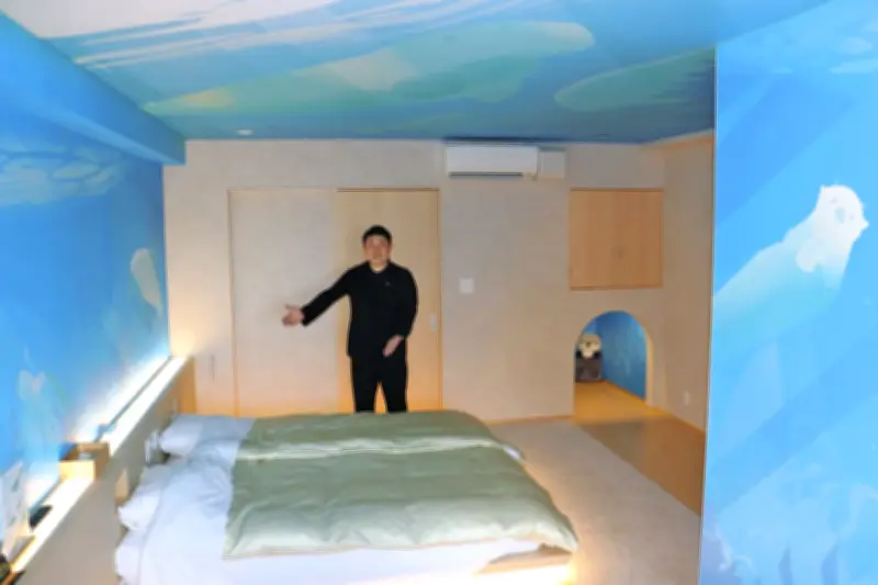 旅館を運営する谷口優太社長(33)は「鳥羽の海の中にいるような気分になれる客室に仕上がりました。家族や個人で水族館での思い出や余韻を楽しんでもらえたら嬉しいです」と語る。料金は1泊2食付きで1人最低2万4千円(税抜き)から。予約は公式ホームページや電話で受け付けている。