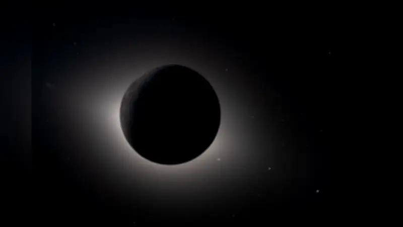 撮影された日食は、手前の月が奥にある太陽を完全に覆い隠した皆既日食で、その現象は約54分間にわたって発生しました。この長時間の観測により、太陽の外側に広がる希薄な大気である「コロナ」が、「ハロ」と呼ばれる光の輪を作り、明るく輝いている様子が鮮明に捉えられています。通常は暗すぎて見えない星も、複数の白い点として写真に写っており、宇宙空間ならではの視覚的データを提供しています。