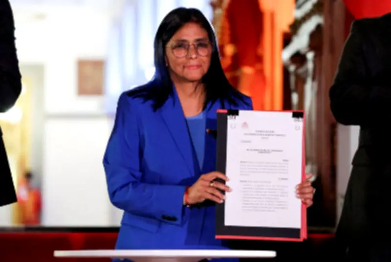 ベネズエラの首都カラカスで、ロドリゲス暫定大統領が政治犯恩赦法の文書を手にする姿が報じられた。同国国会は19日、1999年以降の政治犯の恩赦を認める法案を可決し、ロドリゲス暫定大統領が同日中に署名を行い、法が正式に成立した。この動きは、米国が長らく政治犯の釈放を要求してきた意向を受けた措置と見られている。