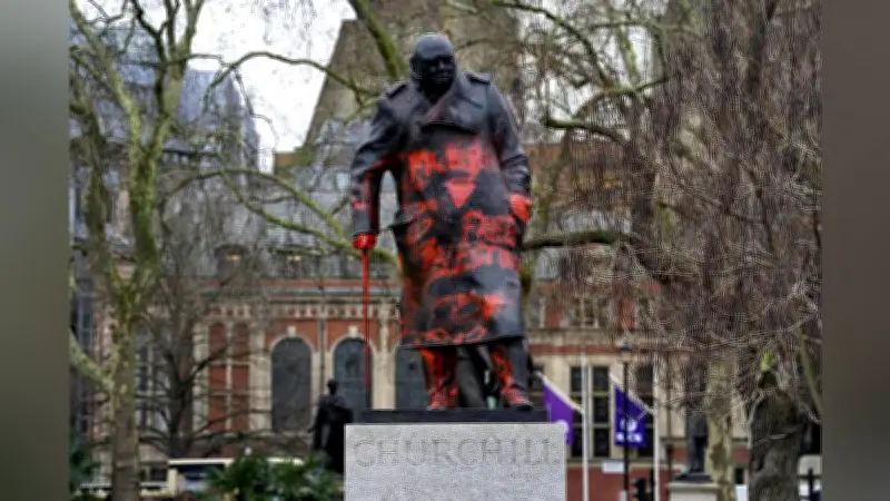 ロンドン警視庁は2月27日、市内中心部にあるウィンストン・チャーチル英元首相の銅像に同日未明、赤い塗料で落書きをした疑いで、38歳の男性を逮捕したと発表しました。この事件は、国際的な緊張を背景に、公共の記念物を標的とした抗議活動の一環として注目を集めています。