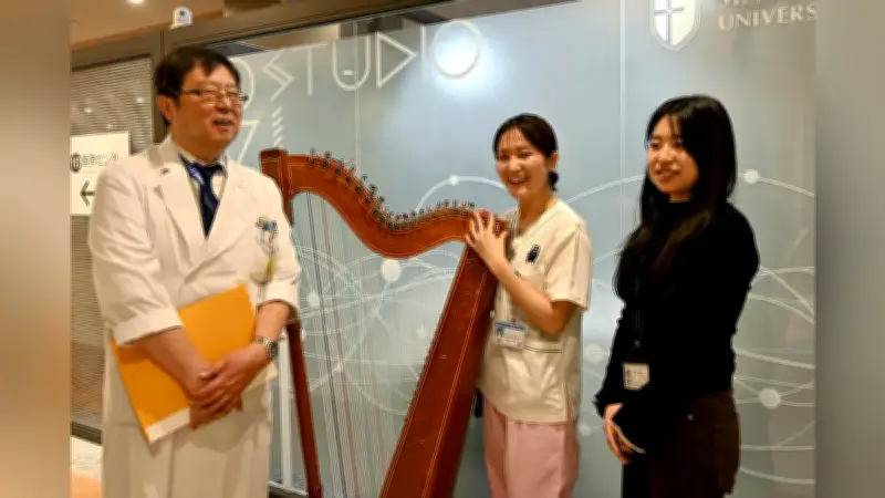 配信スタジオは同病院の入院棟1階に設置されており、2026年3月18日には、看護師の菊池千歌さん(30)が南米のハープ「アルパ」を演奏する様子が収録されました。これは4月配信予定の第3回番組の一部で、菊池さんと司会進行役の同大学2年生、金希書さん(21)による軽快なトークも展開されています。