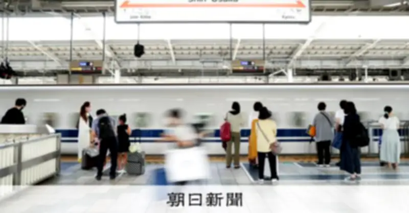 大きな荷物を持った人が行き交うJR新大阪駅の新幹線ホーム=2021年8月、大阪市