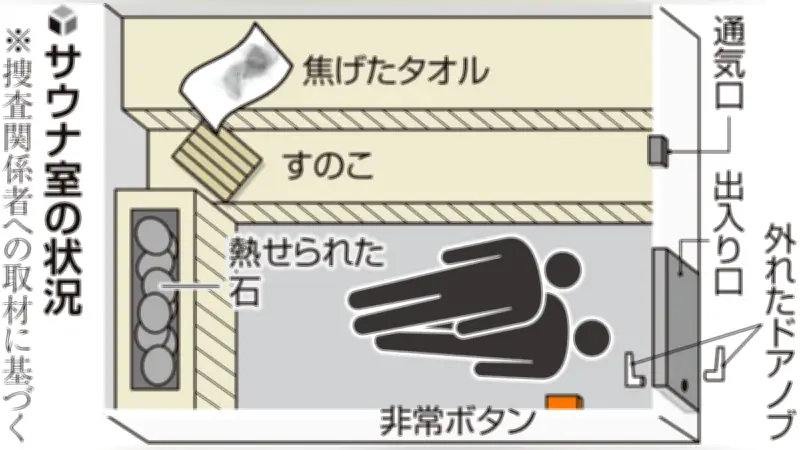 捜査関係者によると、昨年春には別のサウナ室で内側のドアノブが外れ、利用客が一時的に閉じ込められる事故が発生していた。この時は同伴者が外からドアを開けて無事だったが、同様の危険性が以前から存在していたことが浮き彫りになった。