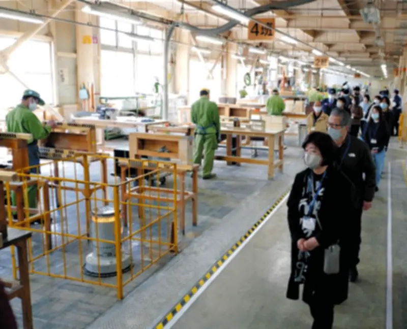 見学会では、限られた範囲ながら、革製品や印刷などを手がける第1工場と木工製品を作る第5工場が公開されました。参加者たちは、受刑者が黙々と作業に励む姿を目の当たりにし、革製の財布やベルト、名刺入れ、ごみ箱、積み木、靴べらなど、多様な製品が製造されていることを学びました。