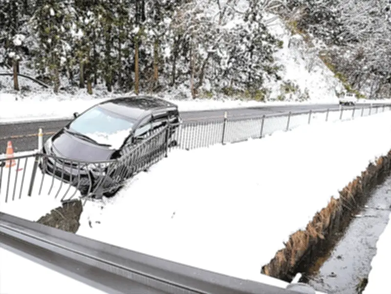 道路状況は極めて悪化しており、県警本部によれば、多数の車両が立ち往生する事態が発生。特に平田村の国道49号では、車両が歩道に突っ込み、防護柵が大きく曲がる事故が午前11時ごろに確認された。幸いにも重大な人的被害は報告されていないが、現場周辺では交通規制が実施されている。