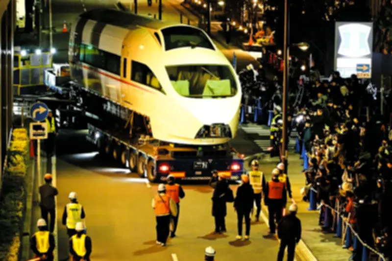 午前1時を過ぎた深夜にもかかわらず、道路沿いには数百人もの熱心な鉄道ファンが詰めかけ、カメラを構えてこの歴史的瞬間を見守りました。トレーラーは一時停止を繰り返しながら、そろりそろりと慎重に進み、無事に目的地へ到着しました。