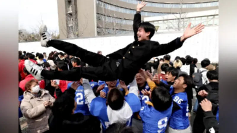 九州大学において、前期日程の合格発表が8日に行われ、合格者たちが喜びの瞬間を迎えました。福岡市西区の伊都キャンパスでは、午前11時に合格者2072人分の受験番号が貼り出されると、合格者らは家族や友人と抱き合ったり、記念撮影をしたりして、喜びを分かち合いました。在学生から胴上げされる合格者の姿も見られ、キャンパス全体が祝福ムードに包まれました。