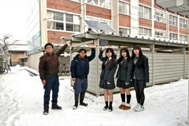 福島県会津若松市にある会津工業高校の電気情報科に在籍する生徒3名が、再生可能エネルギーに関する課題研究の一環として、校内の自転車駐輪場に太陽光発電を利用した自動照明装置を設置しました。この取り組みは、実践的な技術教育の成果として地域から高い評価を受けています。