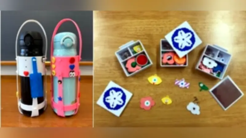 生徒たちは、バイオプラスチックの特性を活かし、二つの具体的な製品を開発しました。一つは、耐久性に優れたボトルホルダーで、日常的な使用に耐える設計となっています。もう一つは、金属アレルギーに対応したピアスで、敏感肌の方でも安心して着用できるよう配慮されています。これらの製品は、単なる学びの成果にとどまらず、実際の社会ニーズに応えることを目指して考案されました。