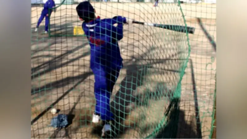寒さの厳しいある日の午前7時半頃、岡山市立岡山中央中学校のグラウンドでは、野球部員9人が顧問の教諭と共に朝練に励んでいました。同校では野球部のみが週3回の朝練を実施しており、グラウンド全体を使用できるため、投手や守備を交代しながら3人が同時にバッティング練習に取り組める利点があります。