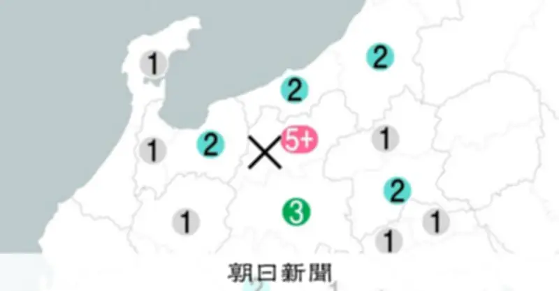 - 震度3: 長野県池田町、松川村、白馬村、小谷村、信濃町、飯綱町、松本市、麻績村、生坂村、筑北村