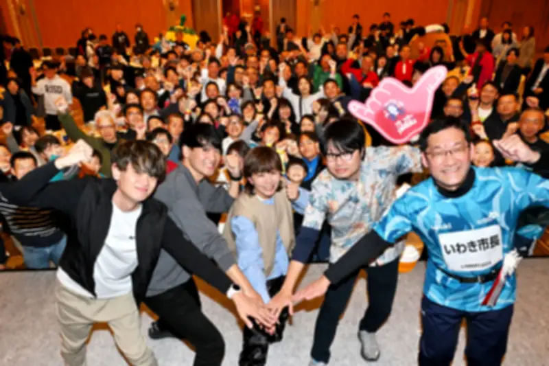 パーティーでは、いわき市を代表するエンターテインメントも披露され、会場を盛り上げました。スパリゾートハワイアンズのダンシングチーム「フラガール」が優雅なパフォーマンスを繰り広げ、サッカーJ2いわきFCの公式マスコット「ハーマー&ドリー」も登場して楽しいショーを展開しました。