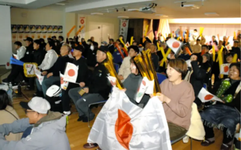 村民約110人が集結した熱気あふれるパブリックビューイング