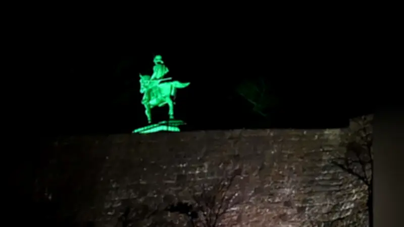 対局会場となった仙臺緑彩館の周辺はすっかり暗くなり、ライトアップされた青葉山の伊達政宗像が、漆黒の闇に浮かび上がっています。この像が、熱戦の行方を見届けるように佇む光景は、歴史的な戦いを象徴するかのようです。