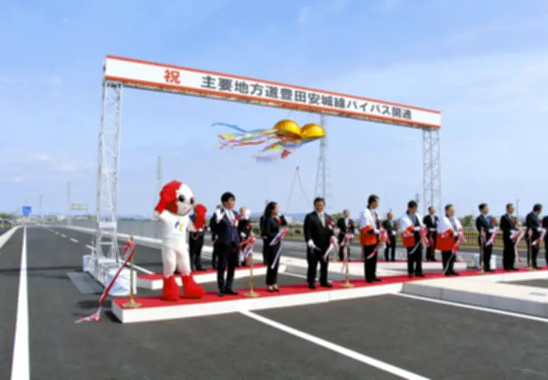 豊田市と安城市を結ぶ主要地方道「豊田安城線バイパス」のうち、未開通だった安城市内の区間が2026年4月25日に開通した。これに伴い、同市新田町のバイパス上で記念式典が開催され、関係者が開通を祝った。この開通により、今秋に開催される愛知・名古屋アジア大会で会場となる市総合運動公園(新田町)へのアクセス向上が期待されている。