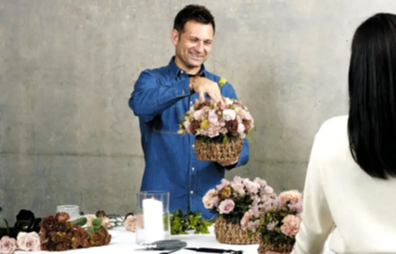 ニコライさんはデンマーク出身で、東京を拠点に活動しています。彼が手がけるフラワーボックスは、2000年の販売開始以来、累計140万個以上の売上を記録する人気商品です。このスクールでは、アレンジメントの基本から、独自の花の組み合わせ方やカラーグラデーションのテクニックまで、幅広く学ぶことができます。指導はニコライさん本人のほか、彼のデザインを受け継いだシニアトレーナーたちが担当します。