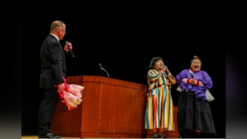 卒業式の終了後、同校は創立100周年記念企画の一環として、人気お笑いコンビ「おかずクラブ」を招いた特別イベントを催しました。会場には大きな歓声と拍手が響き渡り、生徒たちは終始笑顔に包まれ、卒業の喜びを共有する温かい雰囲気に満ちていました。