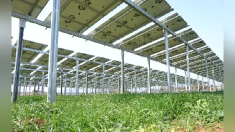 島内に設置される太陽光パネルの約1割、14万枚は営農型として導入されます。これらのパネルは地上から約2.7メートルの高さに設置され、下部ではトラクターを使用した農業作業が可能です。約100ヘクタールの面積で牧草が栽培され、島内の畜産農家に飼料として安価に提供される計画です。
