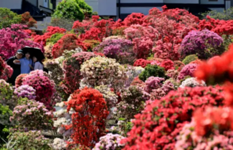 2026年4月19日、東京都世田谷区北烏山にある西沢つつじ園では、色とりどりのツツジが満開を迎え、住宅街を華やかに彩っている。関東地方はこの日、広い範囲で気温が25度を上回る夏日となり、強い日差しが花の美しさを一層際立たせた。