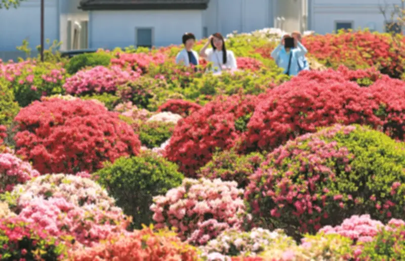 一方、東京都世田谷区北烏山の西沢つつじ園では、強い日差しを受けてツツジの花が一層鮮やかに咲き誇っています。同園は農業を営む西沢和義さん(54)の畑で、隣接する区立つつじ緑地と合わせて約3000平方メートルの広さに約1万本のツツジが植えられています。ここ数年は花の育ちが悪かったため、昨春に西沢さんらが土壌改良を実施したところ、4月12日ごろから葉も見えないほどに満開となりました。