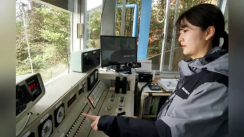 大谷さんは「CAの経験を生かし、安全運行に貢献したい」と意気込みを語る。操舵室では、自動運転のゴンドラを目で追い、風向きや揺れ方に異常がないかを注視。ゴンドラが駅に近づくと計器を確認し、減速を確かめるなど、細心の注意を払っている。